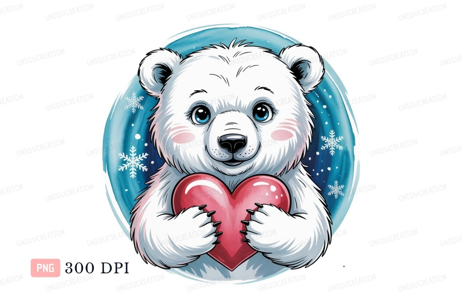 Similar Design Products to Fluffy polar bear holding pink heart white