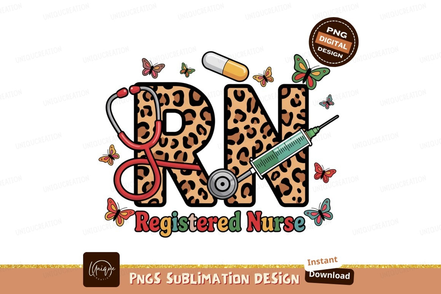 Leopard print rn stethoscope syringe butterflies registered example image 1