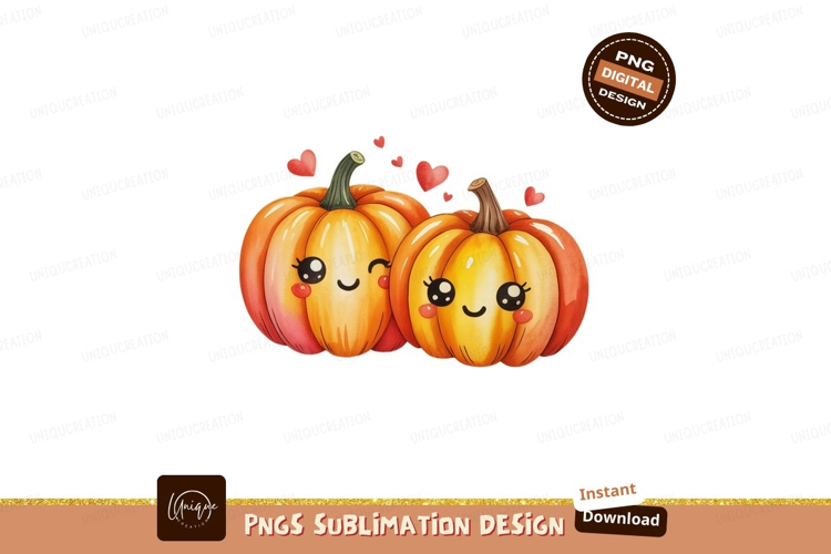 Cute happy pumpkins with hearts orange love example image 1