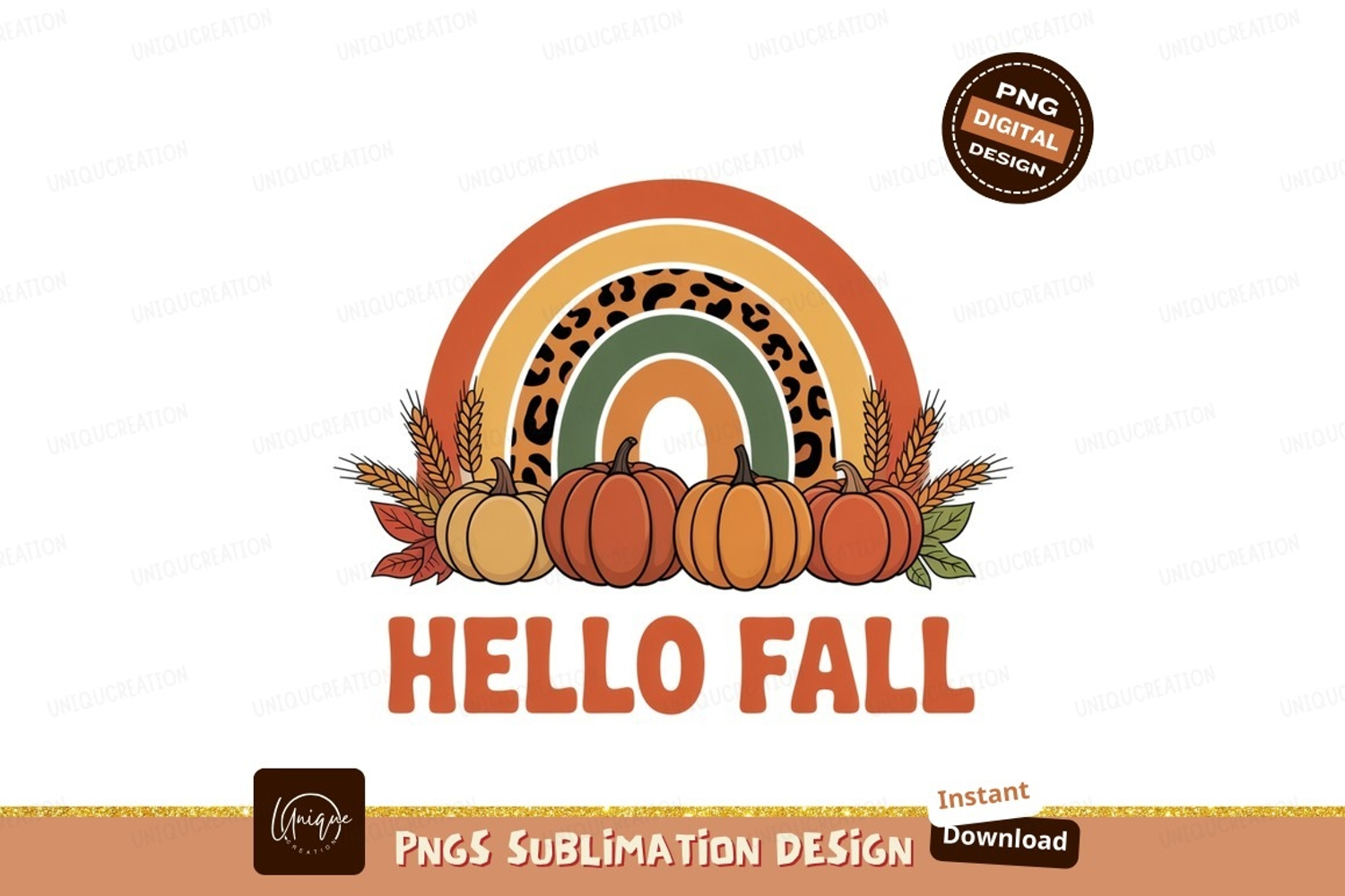 Autumn rainbow pumpkins wheat Sublimation leaves