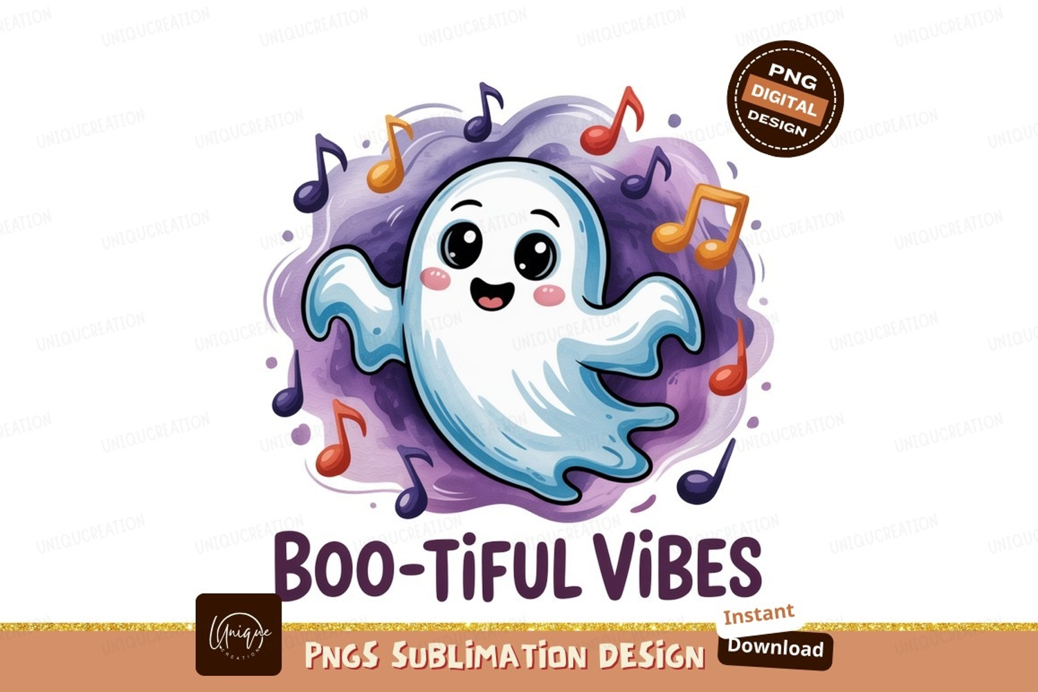 Similar Design Products to Happy ghost surrounded by musical notes purple