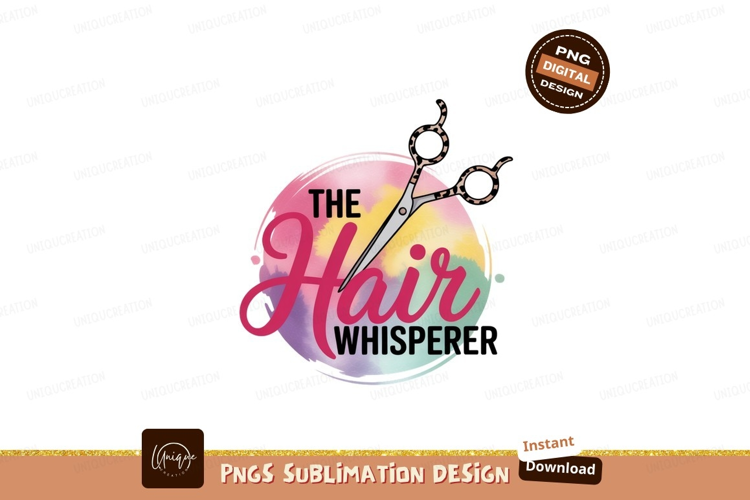 Pink yellow green watercolor circle hair scissors salon example image 1