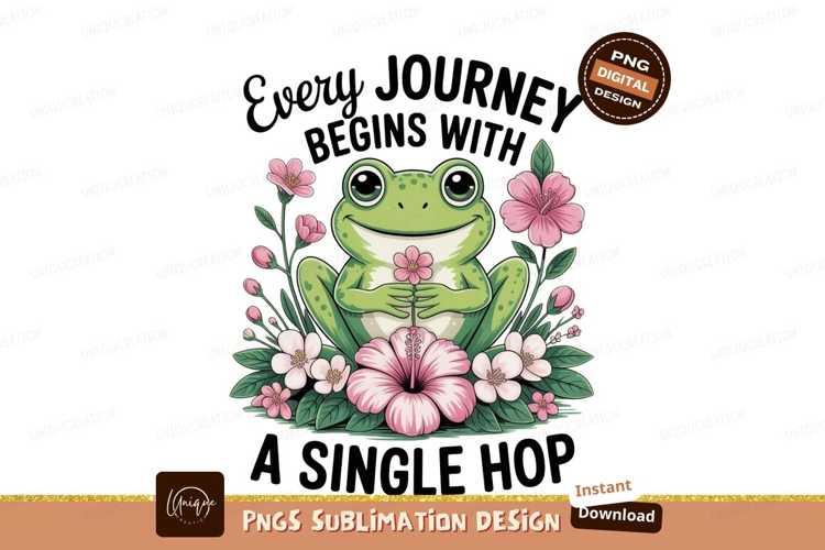 Smiling frog surrounded by pink flowers green leaves example image 1