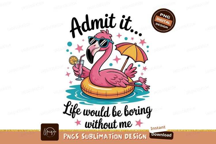 Pink flamingo relaxing with drink sunglasses umbrella example image 1