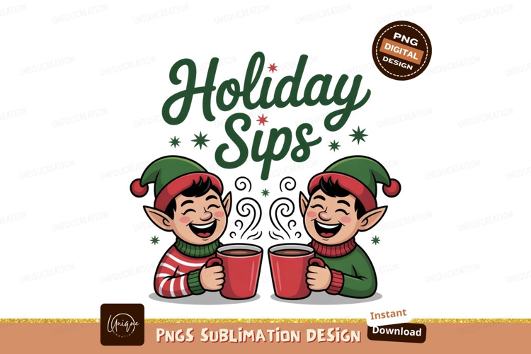 Elves holding hot drinks christmas holiday example image 1