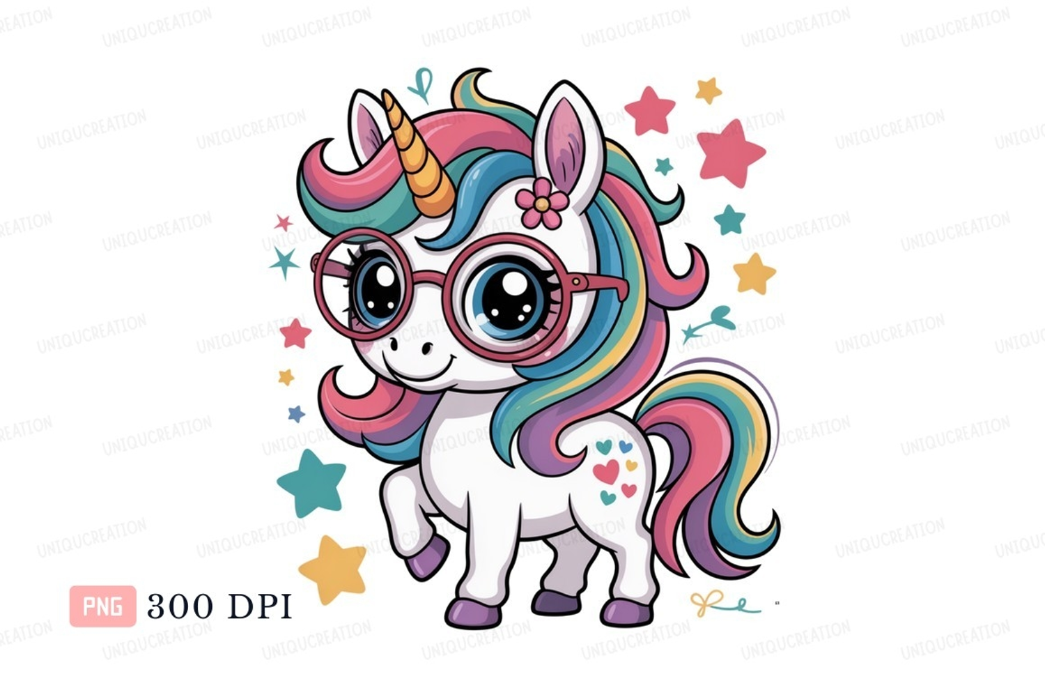 Cute unicorn with rainbow mane and glasses tail example image 1