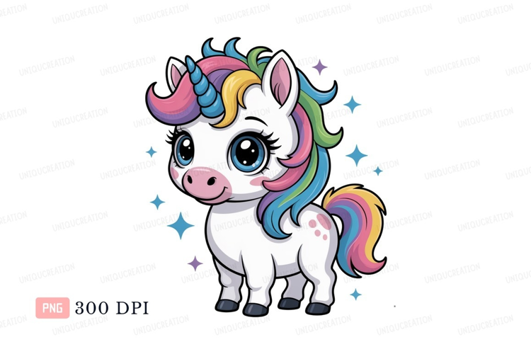 Cartoon Animal Fantasy Cute Horn Unicorn Rainbow Stars Mane Mythical