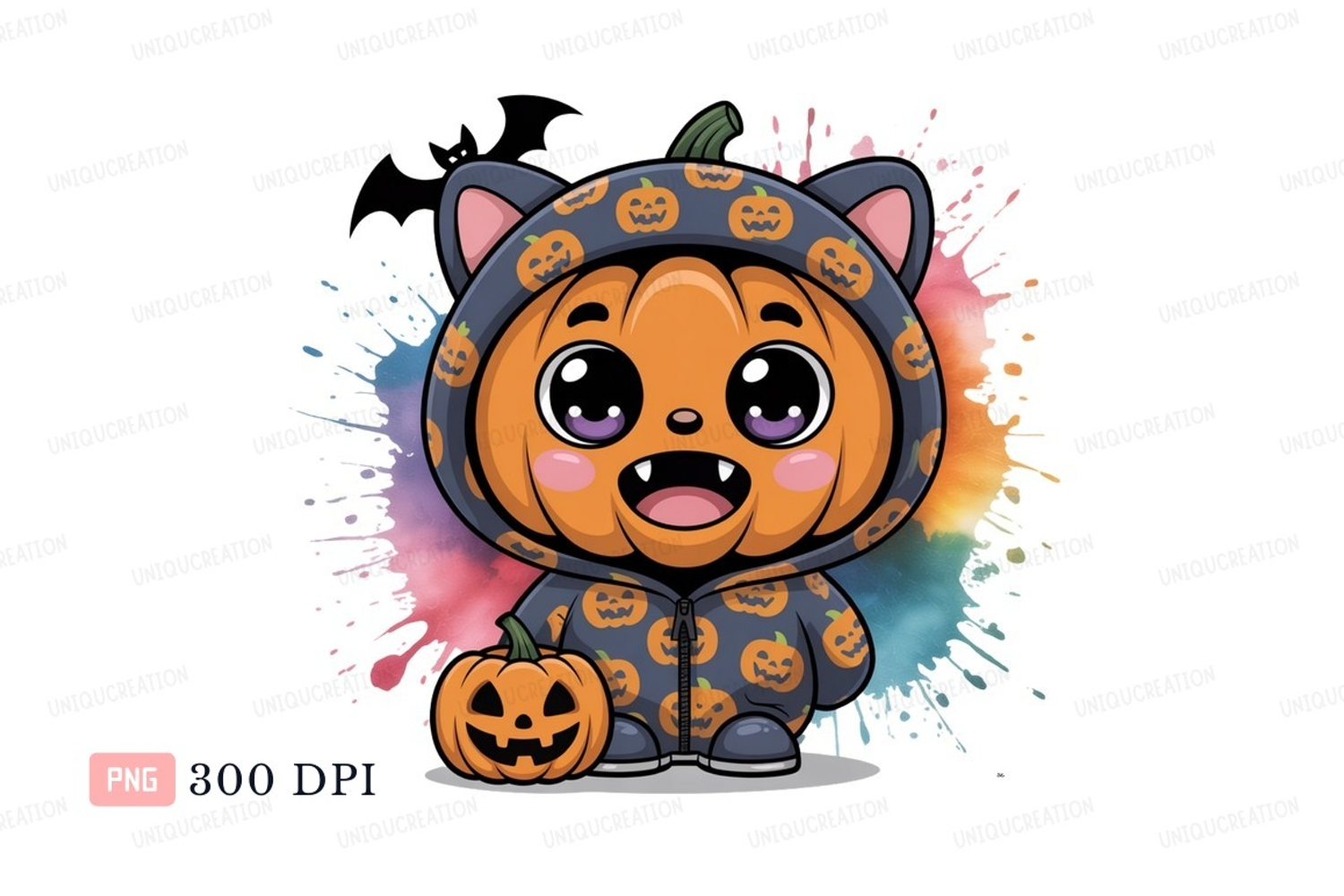 Cute pumpkin character wearing cat ears hoodie halloween example image 1
