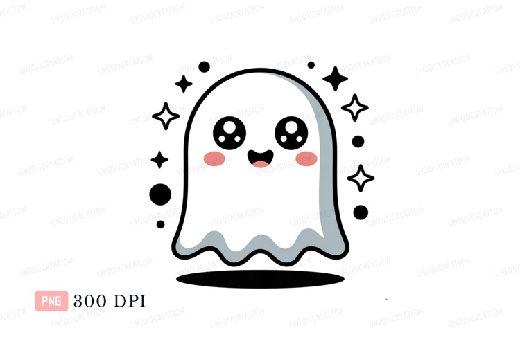 Cute ghost with blush cheeks cartoon kawaii example image 1
