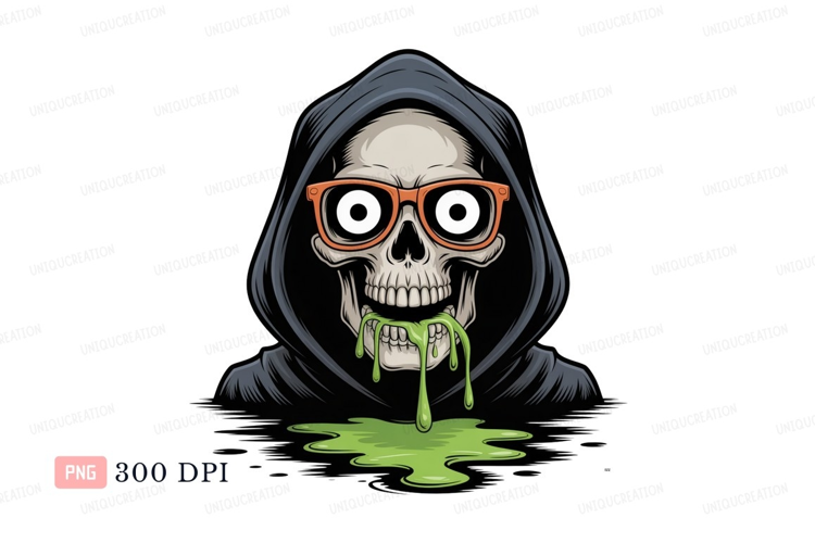 Green Skull Orange Spooky Glasses Grim Reaper Slime Hood Dripping