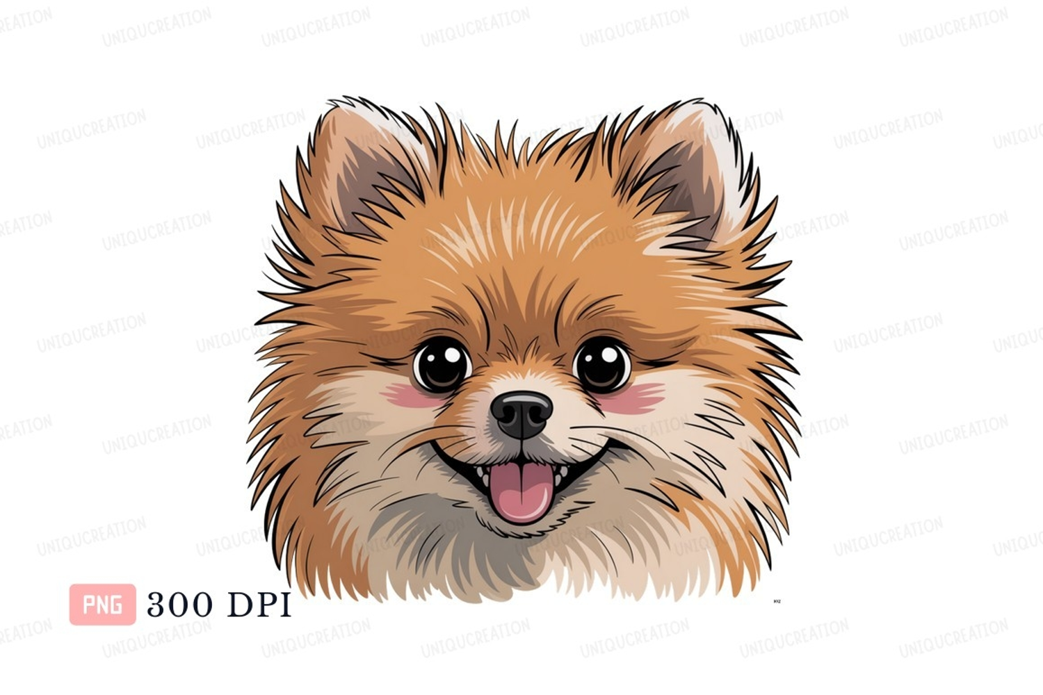 Illustration Cartoon Animal Playful Cute Happy Portrait Dog Fluffy Pomeranian