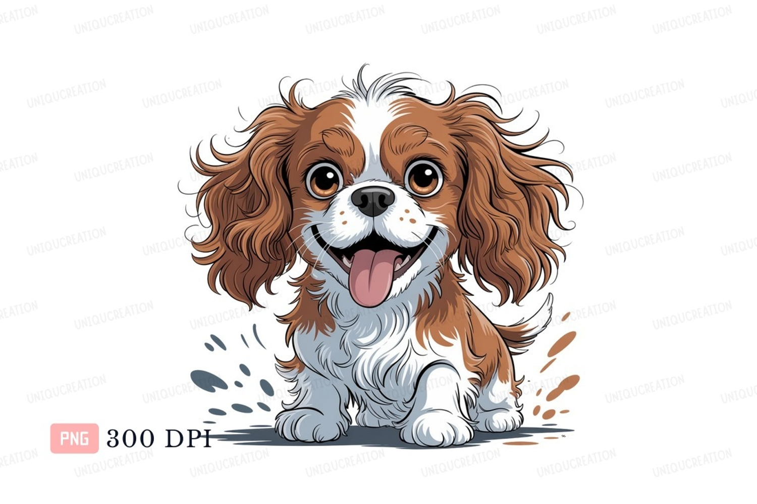 Illustration Cartoon Playful Happy Brown White Pet Puppy Dog Canine
