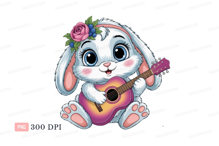 Fluffy bunny playing pink guitar rabbit music example image 1