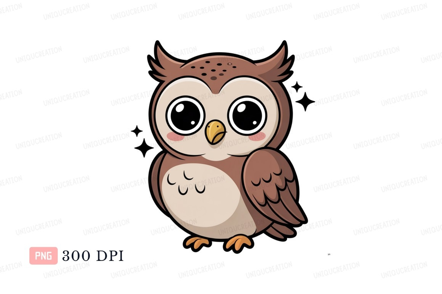 Illustration Cartoon Animal Cute Big Clipart Brown Bird Owl Eyes