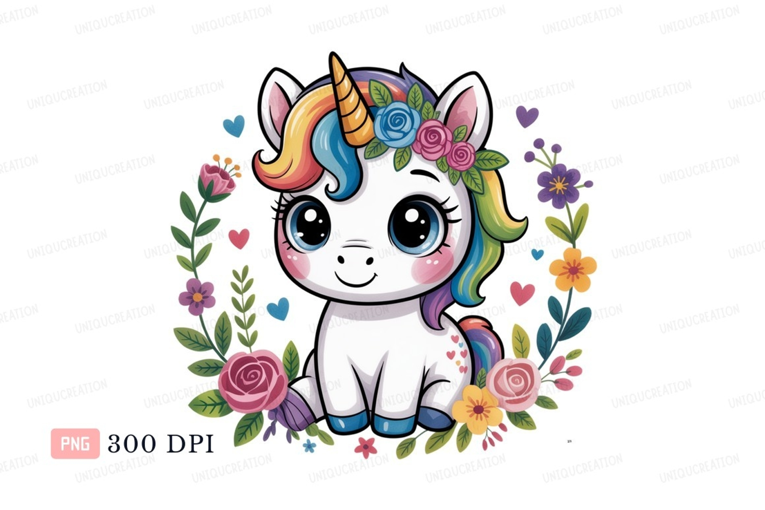 Cartoon Playful Fantasy Whimsical Cute Hearts Flowers Unicorn Rainbow Magical