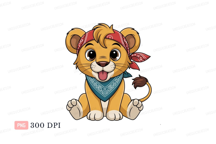 Cute lion cub wearing bandana animal cartoon example image 1