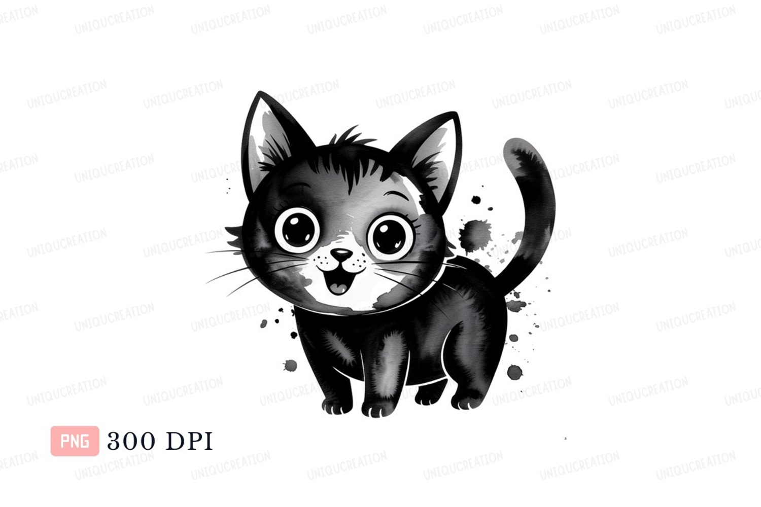 Illustration Cartoon Animal Playful Black Cute Cat White Pet Eyes
