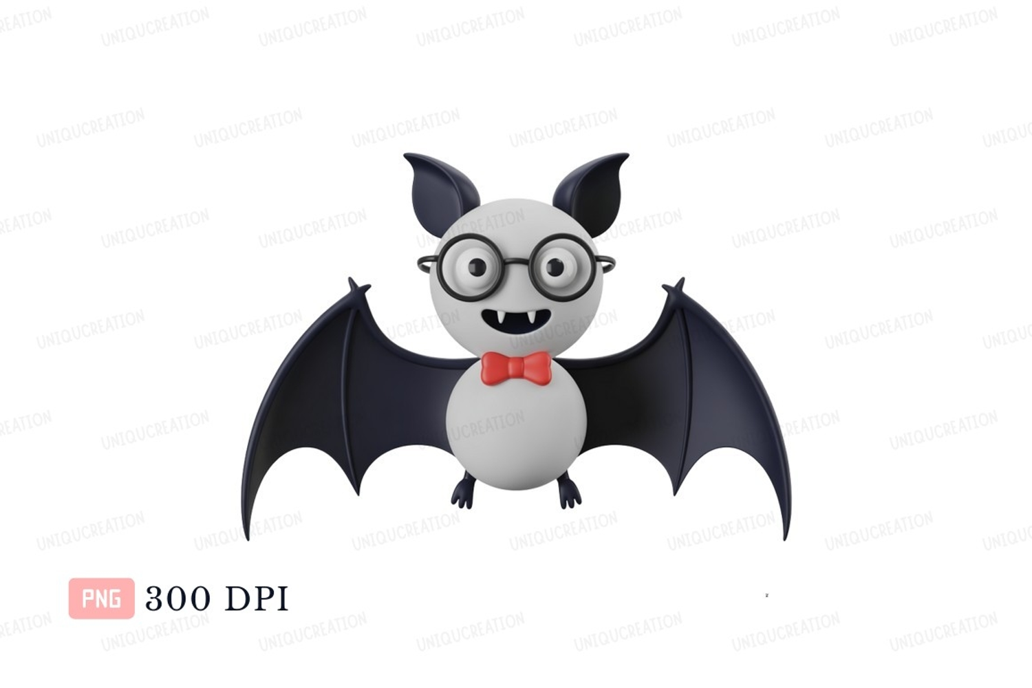 Character Cartoon Black Cute Bat White Glasses Red Flying Bowtie
