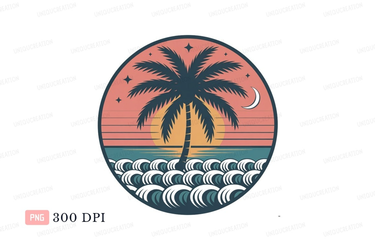 Tropical palm tree ocean sunset crescent moon waves example image 1