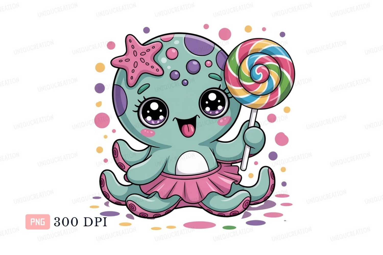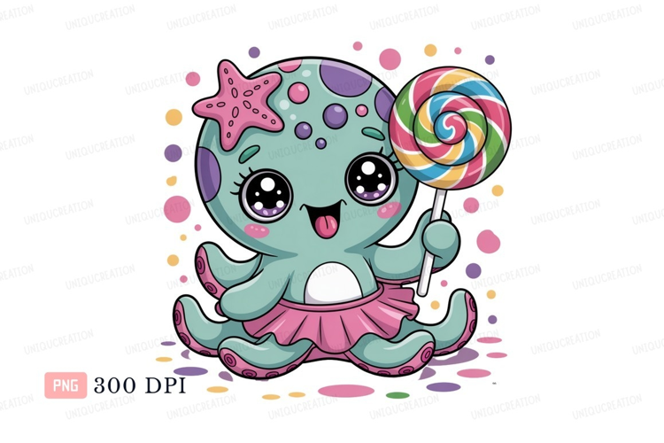 Cute octopus with lollipop and starfish cartoon candy example image 1