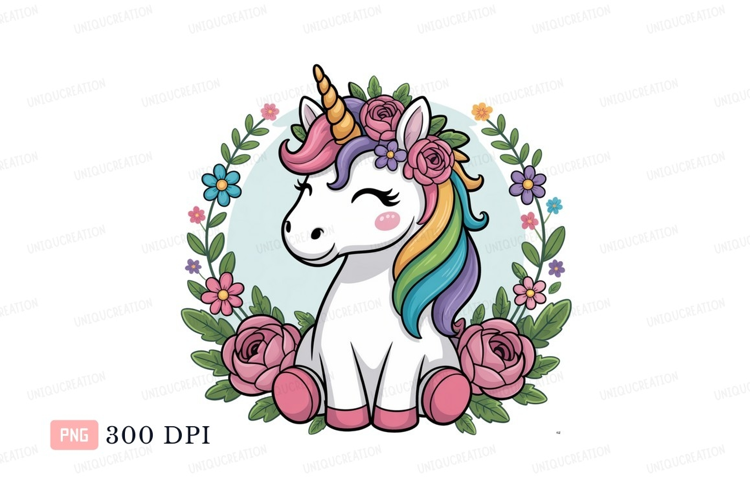 Adorable unicorn surrounded by flowers horse fantasy example image 1