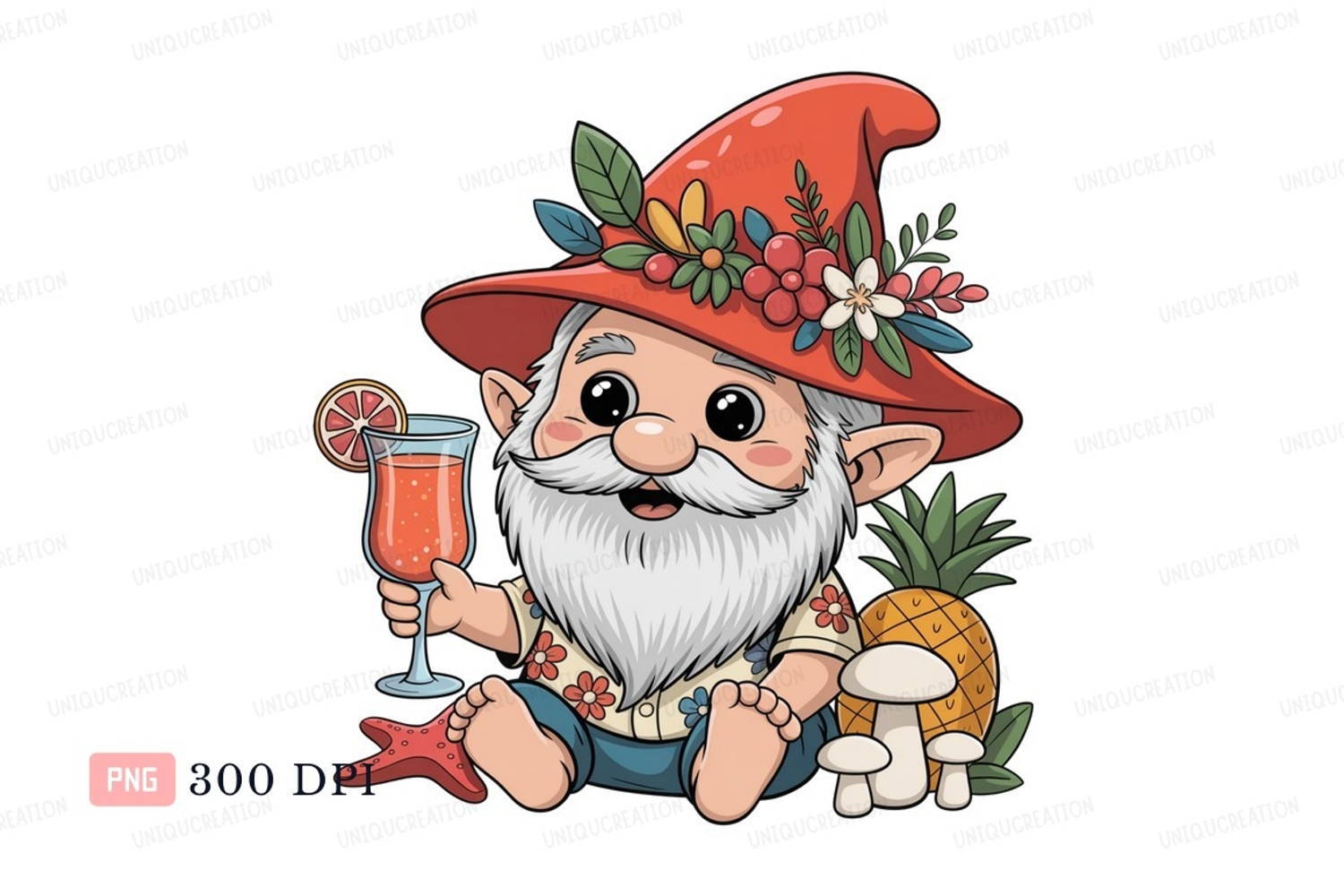 Fruit Flowers Drink Tropical Hat Starfish Cheerful Pineapple Mushrooms Gnome