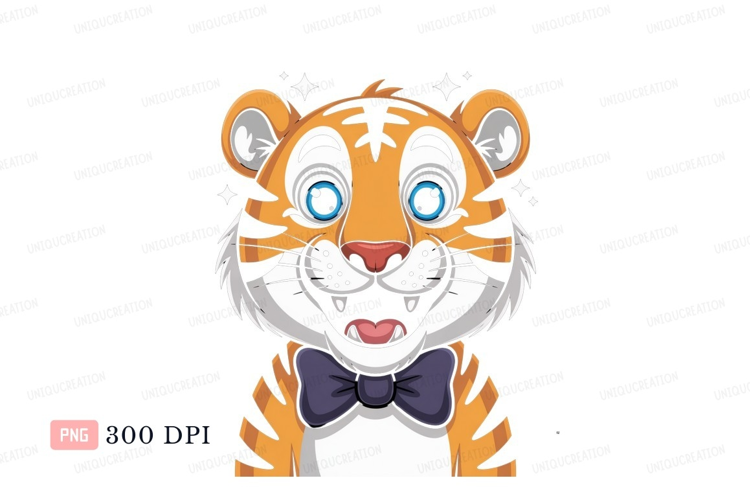 Cartoon Animal Black Cute Happy Orange Blue White Tiger Bowtie