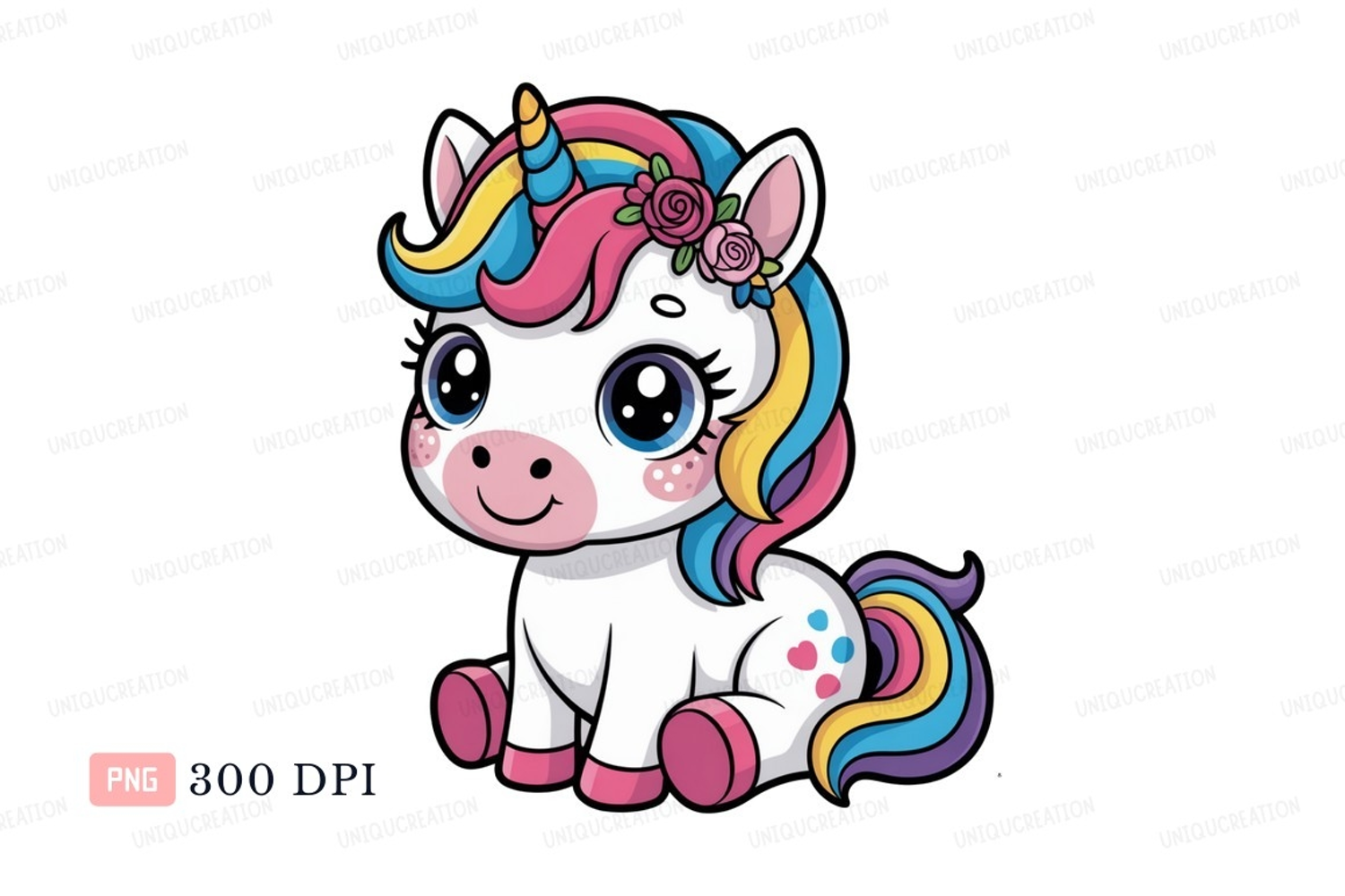 Cute unicorn with rainbow mane and flowers tail example image 1