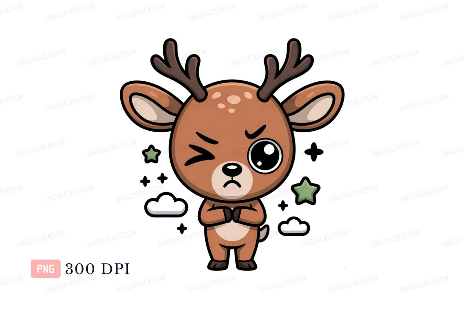 Cartoon Animal Black Cute Green Brown Deer Clouds Stars Winking