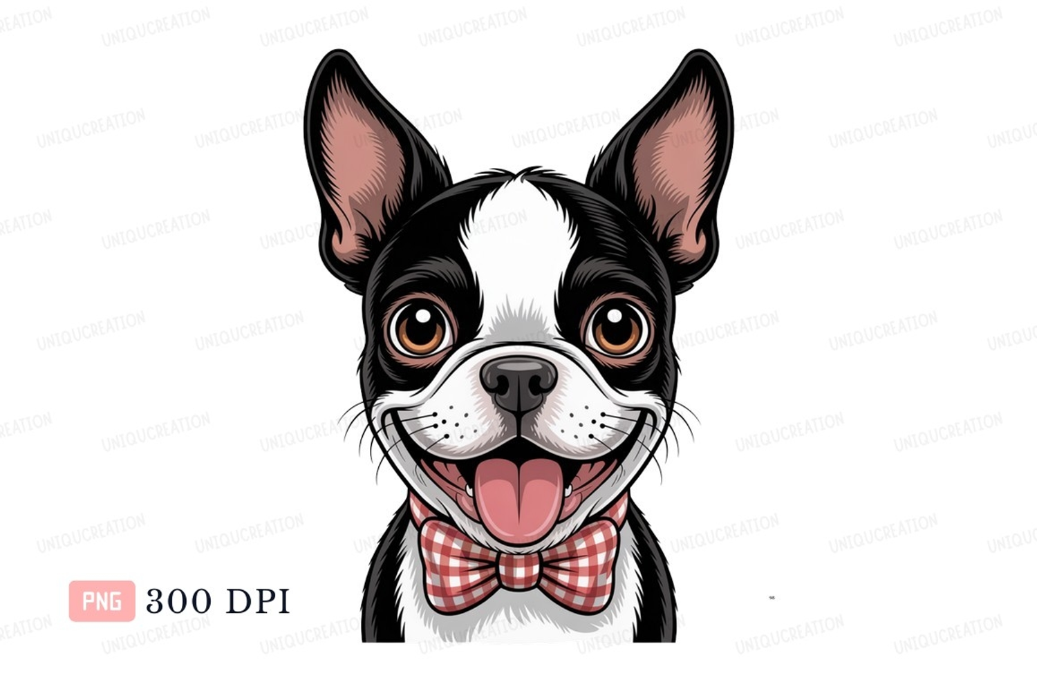 Black Brown White Dog Eyes Terrier Tongue Gingham Bowtie Boston