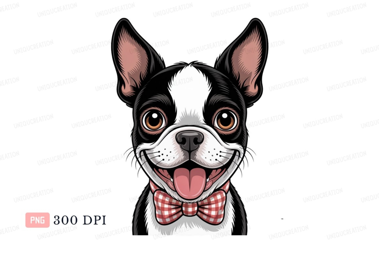 Happy Boston Terrier with Bowtie black white example image 1