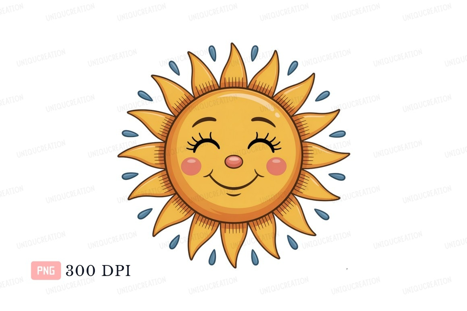 Illustration Cartoon Pink Sun Happy Orange Blue Yellow Drops Smiling