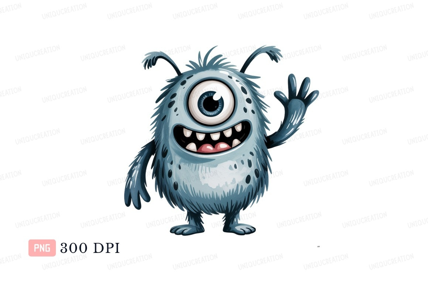 Fluffy blue one eyed monster waving one-eyed example image 1