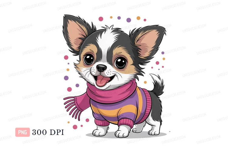 Cute chihuahua wearing sweater and scarf puppy animal example image 1