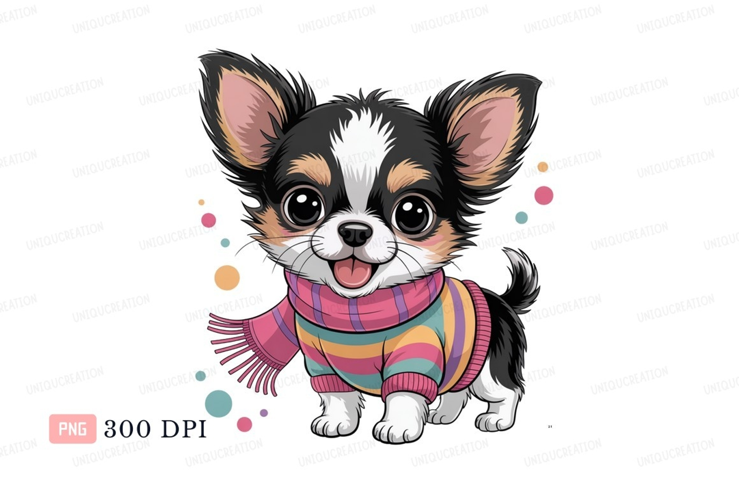 Cute chihuahua wearing colorful sweater puppy animal example image 1