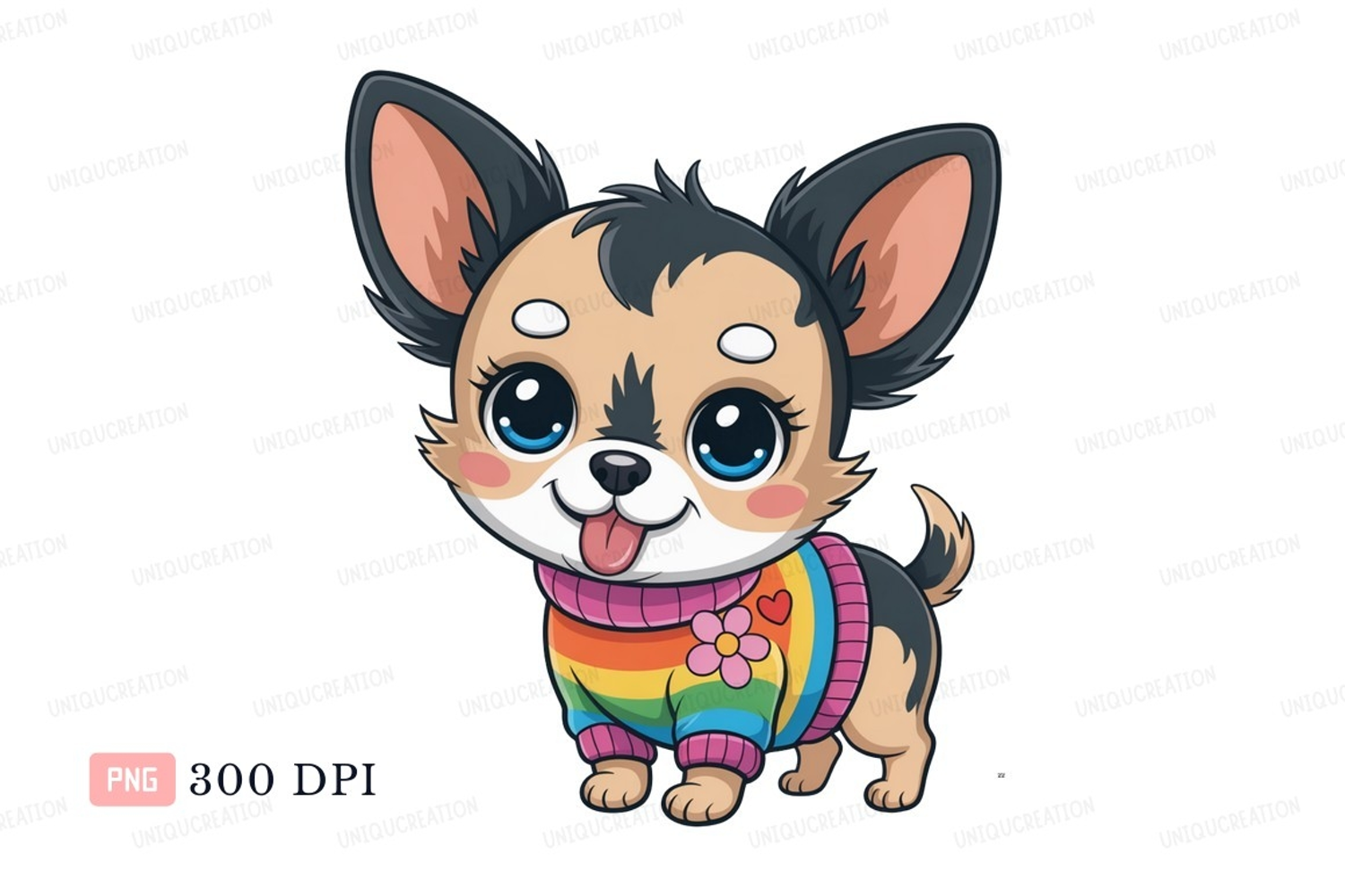Cute chihuahua wearing rainbow sweater puppy cartoon example image 1