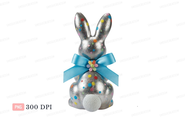 Similar Design Products to Silver bunny with colorful dots and blue bow image