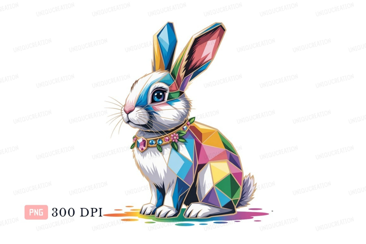 Colorful geometric rabbit with jeweled collar bunny example image 1