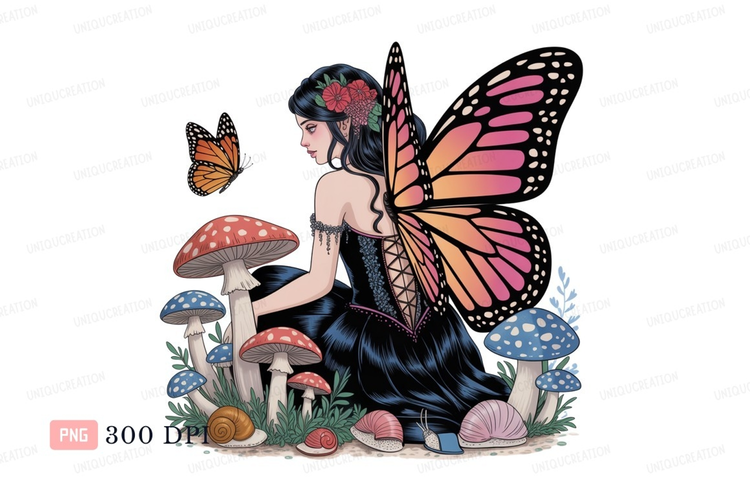 Fairy woman with butterfly wings and mushrooms image example image 1