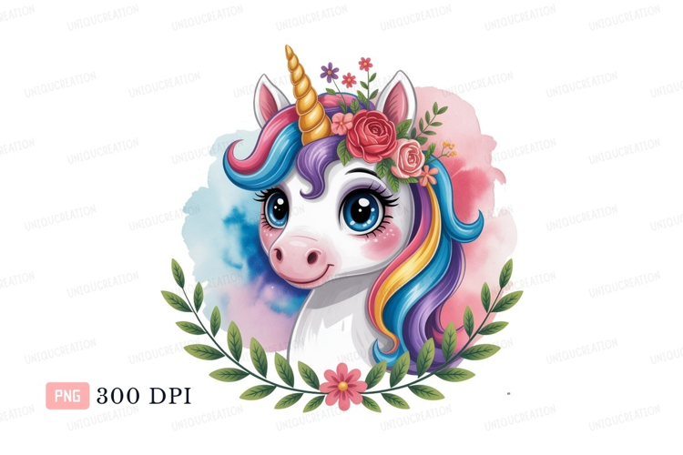 Cute unicorn with floral crown fantasy magical example image 1