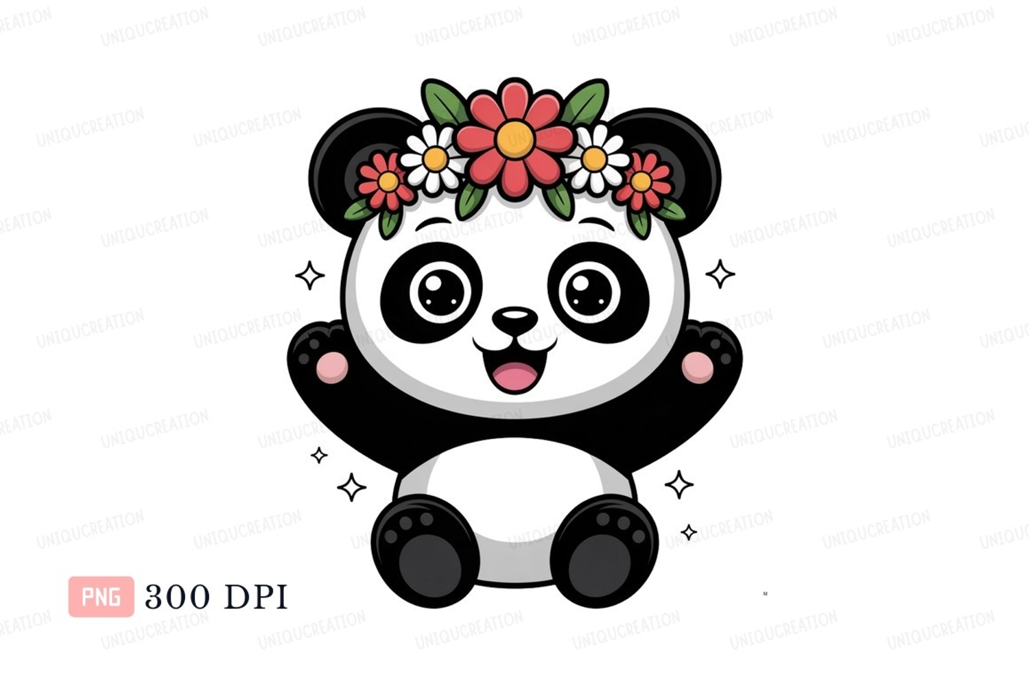 Cartoon Animal Cute Happy Floral Flower Bear Wreath Crown Panda