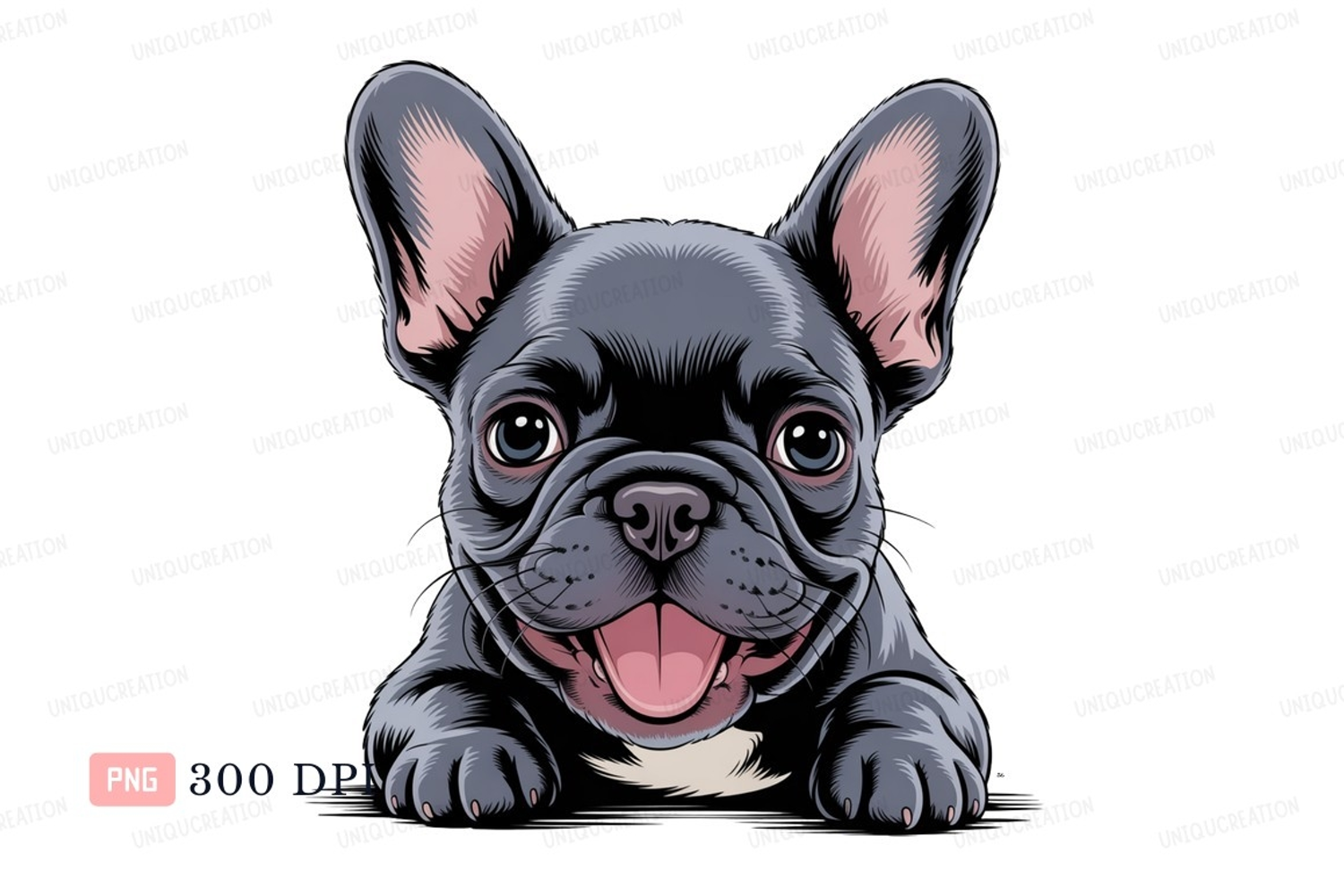French Black Pink Happy Grey Dog Tongue Bulldog Peeking Ears