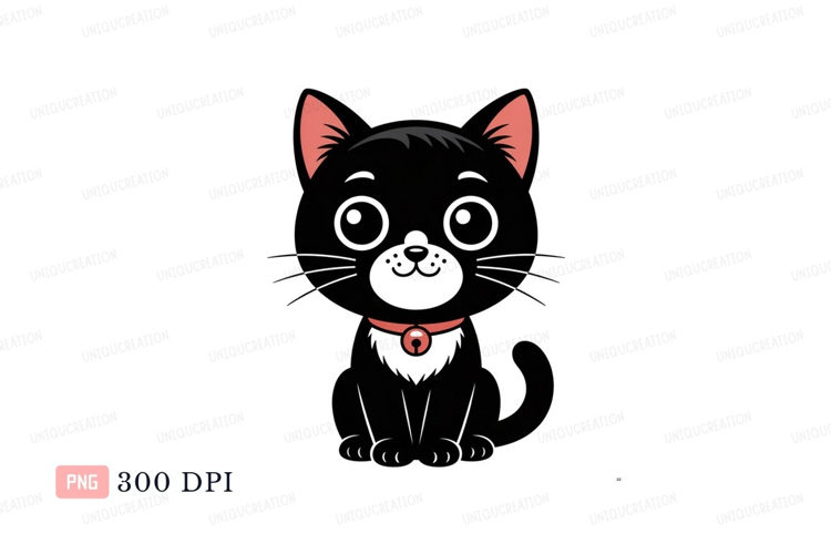 Illustration Cartoon Animal Simple Black Cat Coral Pet Bell Collar