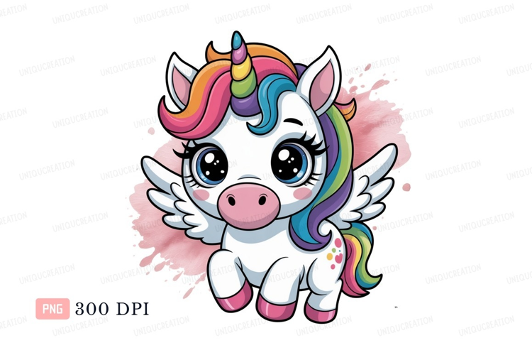 Cute winged unicorn with rainbow mane pegasus fantasy example image 1