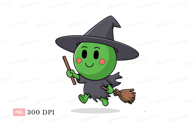 Character Cartoon Fantasy Halloween Green Magic Witch Hat Broom Costume