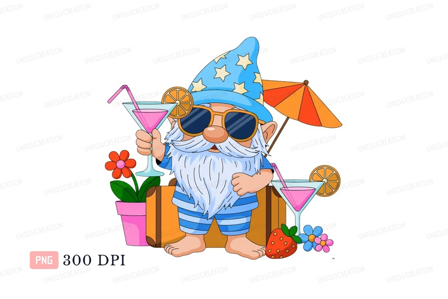 Fruit Summer Beach Drink Hat Vacation Cocktail Sunglasses Luggage Gnome