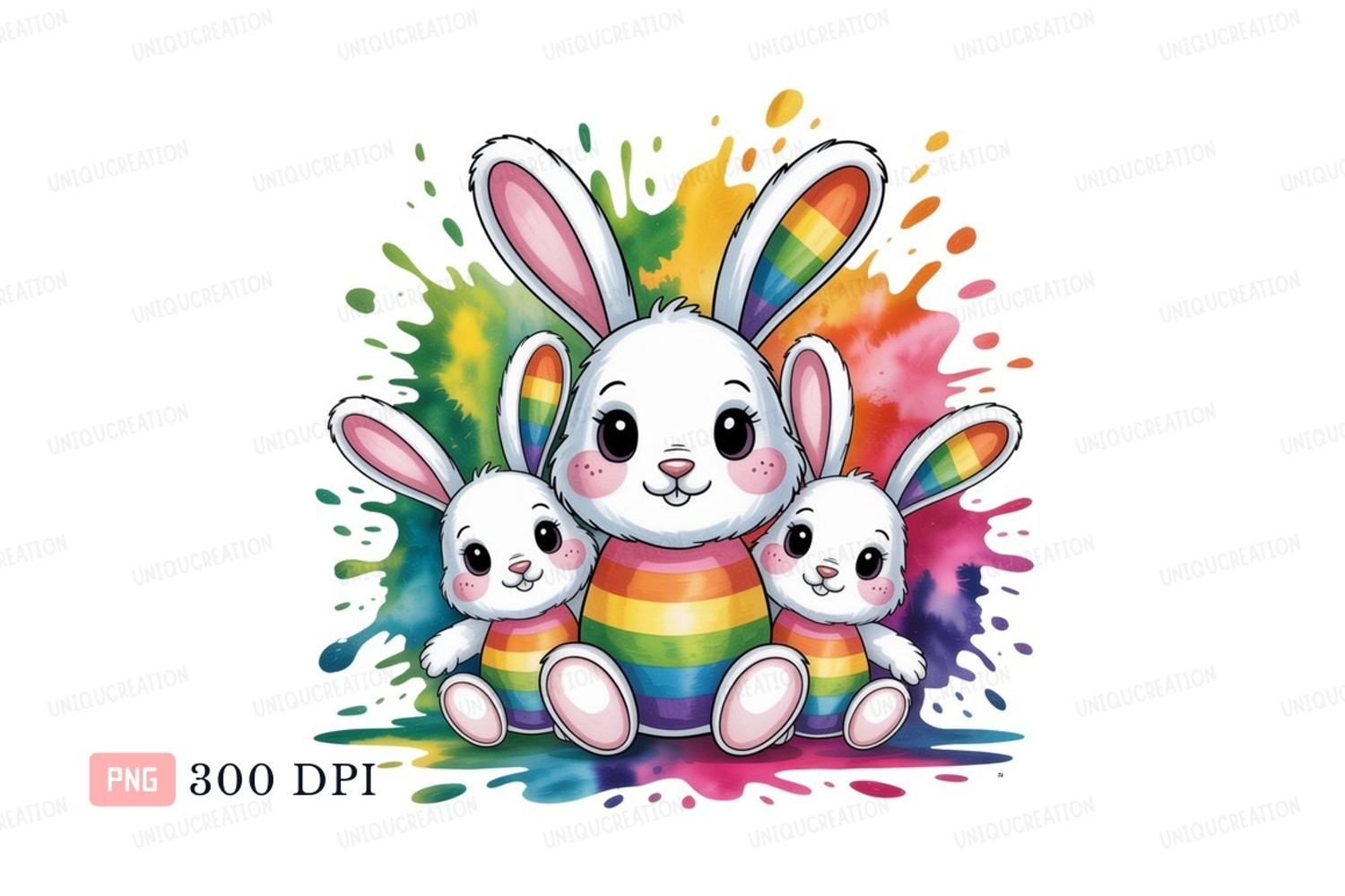 Illustration Family Cartoon Black Cute Colorful Splashes Rainbow Rabbits Bunnies