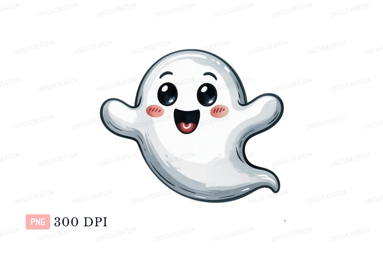 Happy cartoon ghost with rosy cheeks cute white example image 1