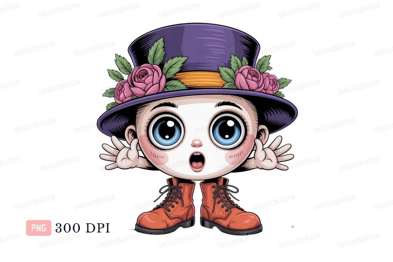 Similar Design Products to Surprised child wearing floral hat and boots roses