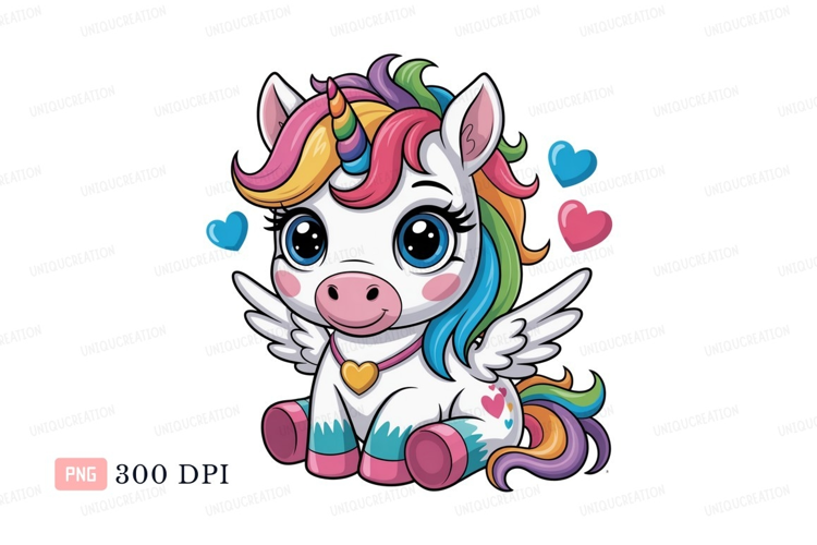 Cute winged unicorn with rainbow mane wings hearts example image 1